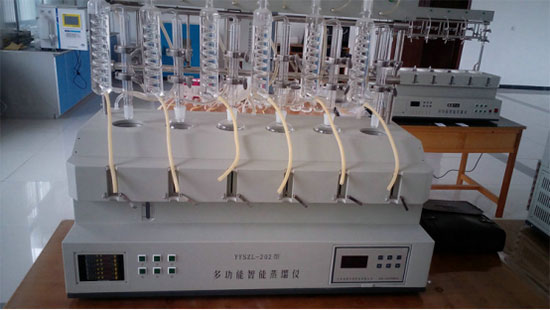 在水質(zhì)化驗和食品檢測中,蒸餾操作是非常常見且又十分重要的前處理步驟。傳統(tǒng)的蒸餾設(shè)備,其加熱、蒸餾、冷凝、接收部分等各自獨立,操作繁瑣;且由于缺乏蒸餾終點控制,常導(dǎo)致蒸餾失敗,影響工作效率。本產(chǎn)品采用智能一體化設(shè)計,同時采用精密控溫、智能終點控制、內(nèi)置式冷卻水自動降溫及回流裝置等技術(shù)手段,實現(xiàn)了操作簡單、自動蒸餾、美觀實用、節(jié)能降耗等目的,可廣泛適用于環(huán)境監(jiān)測、供排水、疾bing預(yù)fang控制中心等領(lǐng)域的水樣的揮發(fā)酚、氰化物、氨氮的蒸餾操作;食品監(jiān)測領(lǐng)域中的二氧化硫殘留量的蒸餾操作以及苯酚等的重蒸餾等。